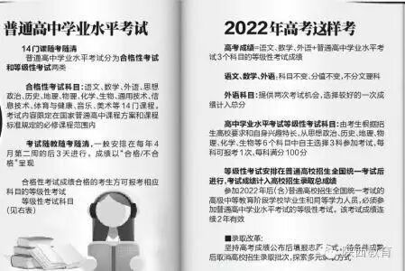 陕西省政府印发推进考试招生制度改革实施方案的通知,方案中提到,及时启动有关考试招生制度单项改革,2019年启动高考招生制度综合改革,到2022年基本建立符合省情的教育考试招生制度,形成分类考试、综合评价、多元录取的考试招生模式。 那么,6年后的高考怎么考?未来的高校如何录取?方案中提到,2019年6月底前公布高考综合改革方案,从2019年秋季入学的高一学生开始实施。 中学阶段关键词1 中小学招生 100%的公办小学、90%以上公办初中划片免试就近入学 【方案】义务教育公办学校实行免试划片入学,100%的公办小学、90%以上的公办初中实现划片免试就近入学。逐步建立基于初中学业水平考试和综合素质评价的高中阶段学校招生制度。省级示范性普通高中、省级标准化普通高中不低于50%的统一招生计划合理分配到区域内初中学校,取消普通高中“择校生”。 【解读】省级示范性普通高中、省级标准化普通高中不低于50%的统一招生计划合理分配到区域内初中学校?西安市远东一中副校长刘鹏说:“目前西安市已经这样实行很久了,这样目的是为了使教育资源分配更公平。以远东一中为例,假如今年招生计划是400人,就需要有50%的计划面向全市定向投放,这样一来,一些区域外的普通中学的优秀学生,就更有可能进入好的高中。” 关键词2 综合素质 五方面评价中学生综合素质,公示后形成素质档案 【方案】制定《陕西省普通高中学生综合素质评价实施办法》。普通高中学生综合素质评价内容主要包括思想品德、学业水平、身心健康、艺术素养、社会实践等5个方面,评价方法与程序采取写实记录,定期整理遴选,在公示审核后形成学生的综合素质档案。 【解读】刘鹏介绍:“目前中学生的综合素质测评,开始越来越细分,而且没有课本,不需要复习。去年其分值增加到100分,并且70%计入中考总分。就是为了帮助学生减轻课业负担,更注重综合素质的培养。” 关键词3 学业水平 将分为“合格性”和“等级性” 【方案】普通高中学业水平考试分为合格性考试和等级性考试两类。合格性考试的科目设定为语文、数学、外语、思想政治、历史、地理、物理、化学、生物、通用技术、信息技术、体育与健康、音乐、美术等14门课程。各科成绩均合格是普通高中学生毕业以及高中同等学力认定的主要依据。等级性考试科目设定为思想政治、历史、地理、物理、化学、生物等6门课程。考试内容限定在国家普通高中课程方案和课程标准规定的必修和选修课程内容范围内。考试安排在普通高校招生全国统一考试后进行,考试成绩计入高校招生录取总成绩。参加2022年后(含)普通高校招生全国统一考试的高级中等教育阶段学校毕业生和同等学力人员,必须参加普通高中学业水平考试的等级性考试。该考试成绩用于高校招生,连续2年有效。合格性考试成绩合格的考生方可报考相应科目的等级性考试,等级性考试成绩以各科考试的卷面总成绩为依据,按实际参加该次考试考生总数(缺考考生除外)的相应比例划分等级,各等级划分比例为A等级15%、B等级30%、C等级30%、D等级>20%、E等级<5%。 【解读】在高中阶段考完14科,且不再分文理科,会不会加重学生学业负担?刘鹏说:“虽然看起来考的科目很多,实际上并不会增加负担。未来变成合格性考试,只有合格与不合格的区分,学生只参加水平性考试是很简单的。据目前的学业水平测试结果分析,其中A占30%,B占40%,C占27%,而D仅占3%。所以学生可以轻松应对随考随清的14门科目。这是为了增强学生在科学知识和人文素养方面的均衡了解。” “对学生学习不存在加重负担,但可能会对语言表达能力好的学生更有优势。”刘鹏分析,“未来高考固定的三科中,语文和英语都是语言类,占固定分值的三分之二。而其他三科为等级,权重分不及固定分值高,所以语文和英语好的学生,会有优势。” 刘鹏分析,“增加考试次数改变了学生一考定终身的现状,但也可能会增加考试负担,因为学生只要可以考两次,就宁愿多考一次。” 高考改革关键词4 综合改革 语数外分值不变,不分文理科,外语将可以考两次 【方案】1、改革考试科目设置。增强高考与高中学习的关联度,2019年6月底前公布高考综合改革方案,从2019年秋季入学的高一学生开始实施。2022年起,高考成绩由普通高校招生全国统一考试的语文、数学、外语3个科目成绩和普通高中学业水平考试3个科目的等级性考试成绩组成。保持普通高校招生全国统一考试的语文、数学、外语科目不变、分值不变,不分文理科,外语科目提供两次考试机会,选择较好的一次成绩计入总分。计入总分的高中学业水平考试科目,每科满分100分。由考生根据招生高校要求和自身兴趣特长,从思想政治、历史、地理、物理、化学、生物等6个科目中自主选择3科参加考试,每科可报考1次。 2、改革招生录取机制。探索基于普通高校招生全国统一考试和普通高中学业水平考试成绩、参考综合素质评价的多元录取机制。普通本科院校要于2019年前根据自身办学定位和不同学科专业人才培养的需要,研究提出对普通高中学业水平考试等级性考试科目报考要求和综合素质评价使用办法,及时向社会公布并体现在每年度的招生章程中。 【解读】未来如何选择选考等级考试的3个科目?高考改革之后,未来高校将如何招生?此前西安交