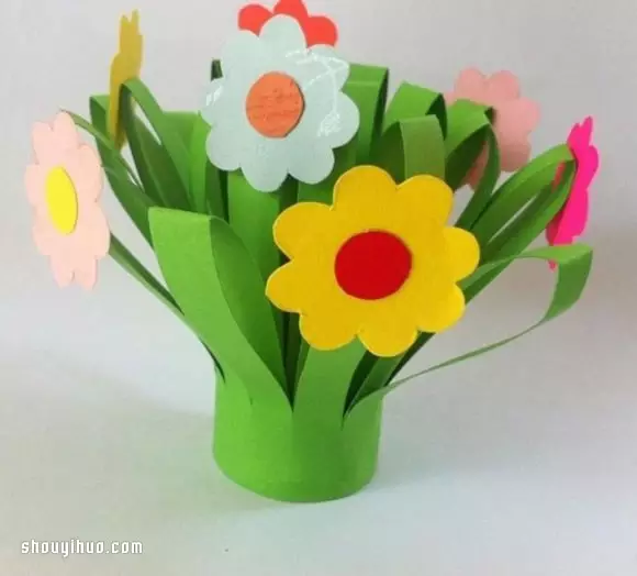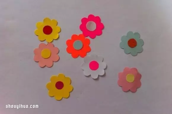 再用红色、黄色、白色等卡纸剪出小花