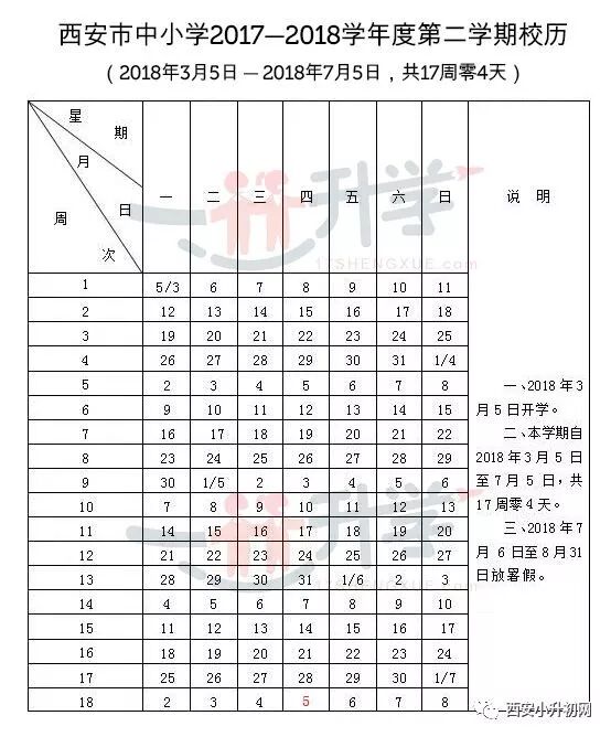 2018西安市中小学暑假放假安排: